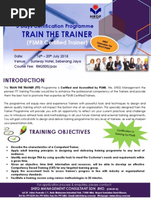 Train The Trainer 16 20 July 2018 At Sunway Hotel Seberang Jaya Psmb Certification Programme Competence Human Resources Educational Assessment