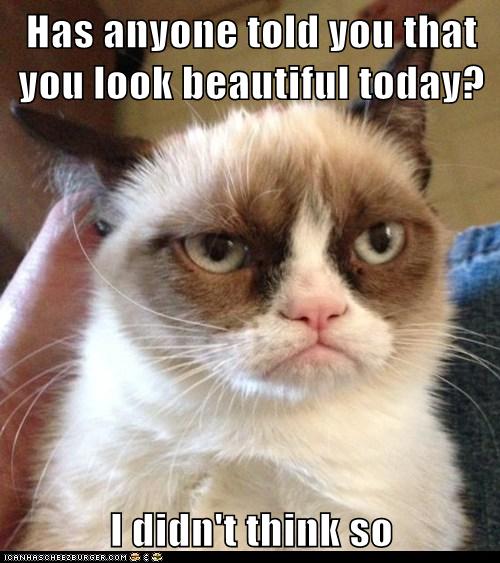 Has Anyone Told You That You Look Beautiful Today I Didn T Think So Lolcats Lol Cat Memes Funny Cats Funny Cat Pictures With Words On Them