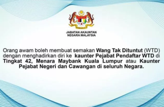 Semakan Wang Tak Dituntut Wtd Boleh Jabatan Akauntan Negara Malaysia Facebook