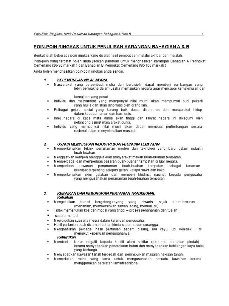 Poin Poin Ringkas Untuk Penulisan Karangan Bahasa Melayu Spm